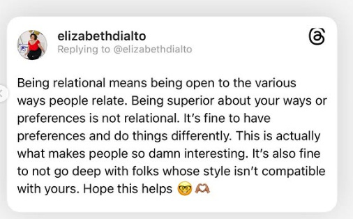 This social media post also helps me reframe the two ex friends I mentioned earlier. Maybe they don’t realize. I know one of them in particular will respond to something with “oh. I know what you mean…” and then go on to describe something that is completely off base from what I was talking about. That behavior would bother the hell out of me, but maybe it is her neurodivergent way of trying to relate. I don’t know because I have never asked. I also feel a little called out when Elizabeth warns against being superior about our ways and preferences. Those two ex friends would absolutely agree that I have a tendency to be superior.